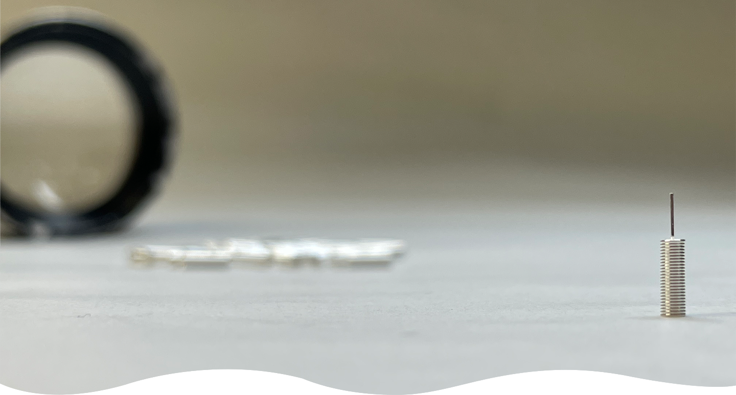 極小の超精密スプリング、髪の毛より細いスプリングの製作が可能です。