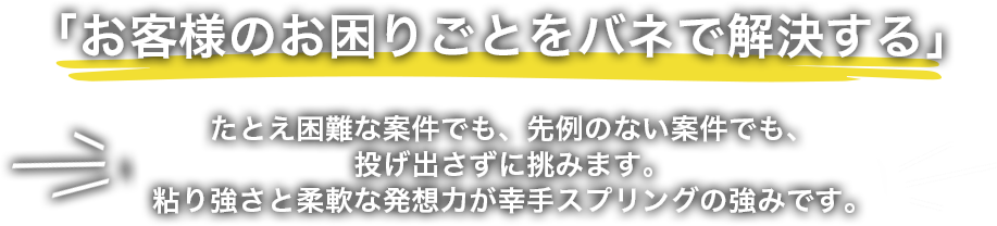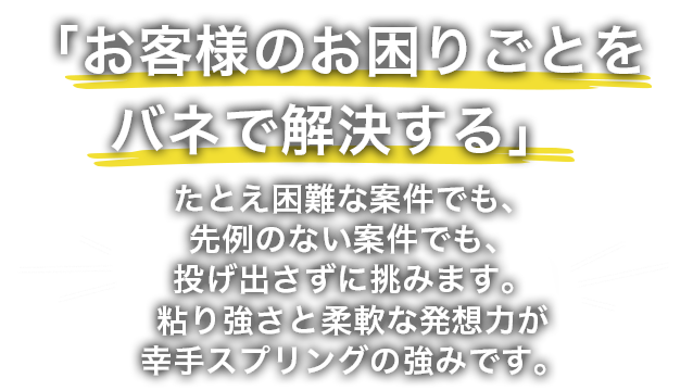 バネの用途、材料、予算、納期を考えた設計からのアドバイスをさせていただきます。完全オーダーバネ、工業精密バネ、特殊バネを得意としております。試作や量産品のご相談まで、バネの設計、製造に関することならどんなことでもお気軽にご相談ください。